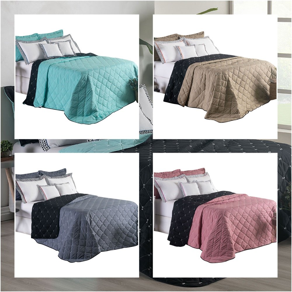 01 Cobre Leito Dupla Face Bordado Casal Queen: 2,60m x 2,40m