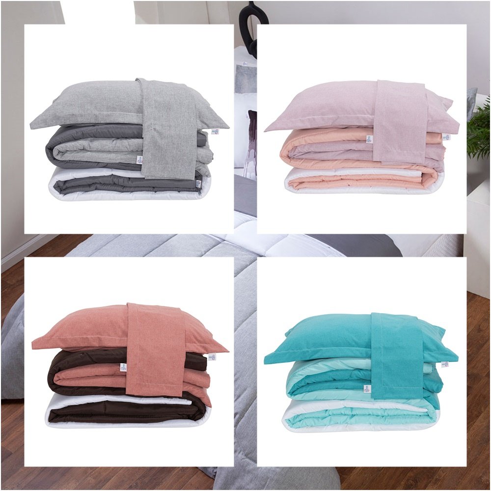 O Kit Edredom Colorful traz um toque suave e moderno, transformando a decoração da sua cama e garantindo conforto excepcional para o seu descanso.