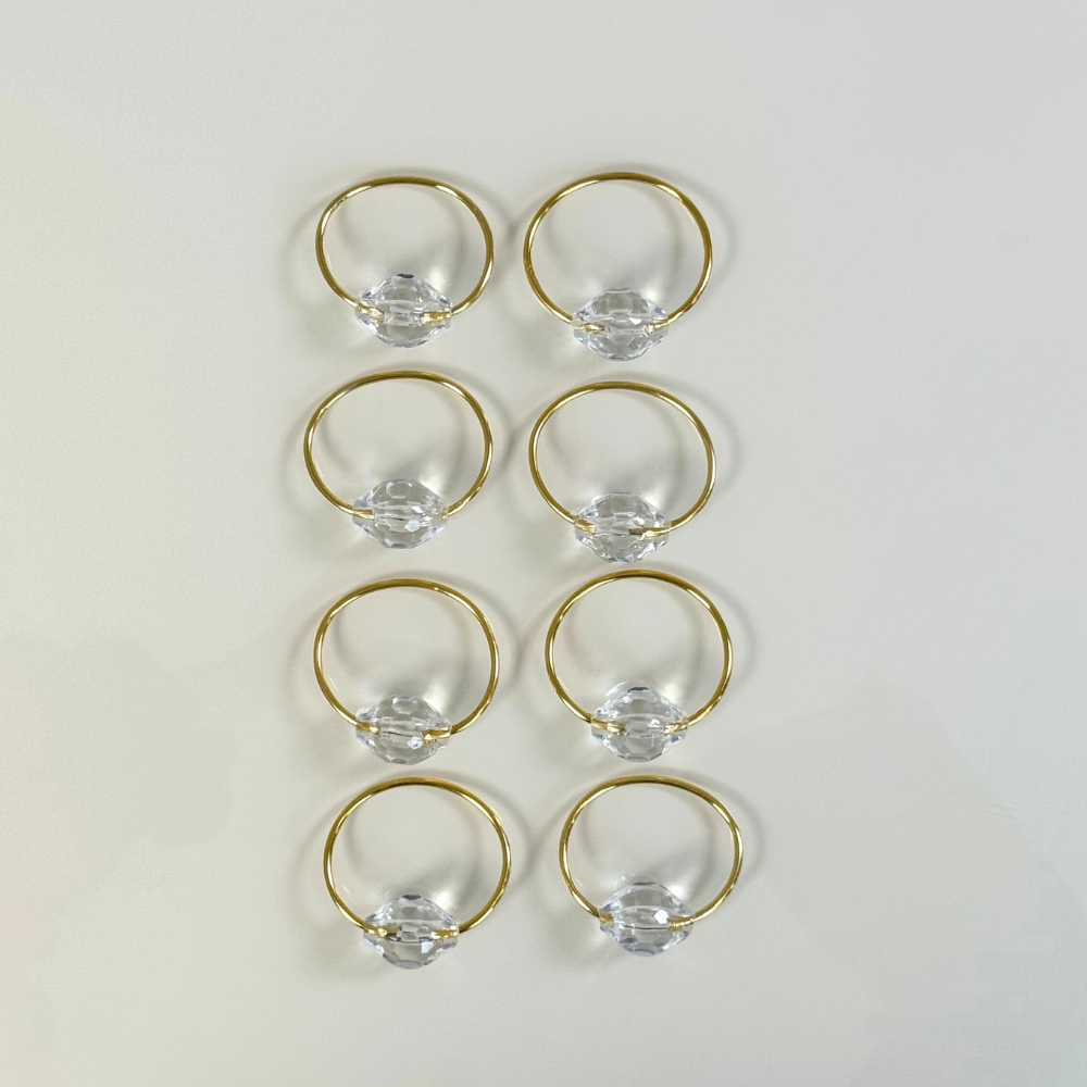 Finalize sua mesa com charme e brilho! Anéis para guardanapos com detalhe cristalino, perfeitos para composições refinadas.